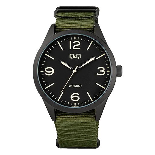 ساعت مچی مردانه کیو اند کیو مدل Q77B-004 با ظاهری جسورانه و اسپرت، گزینهای ایدهآل برای استفاده روزمره و فعالیتهای خارج از منزل است. ترکیب رنگ قاب مشکی مات با **بند برزنتی سبز رنگ**، استایلی نظامی و صحرایی به این ساعت بخشیده که با تیپهای کژوال و اسپرت همخوانی بالایی دارد. قطر قاب 42 میلیمتری این مدل، آن را در رده ساعتهای با سایز استاندارد قرار میدهد که برای اکثر مچهای مردانه مناسب است.
