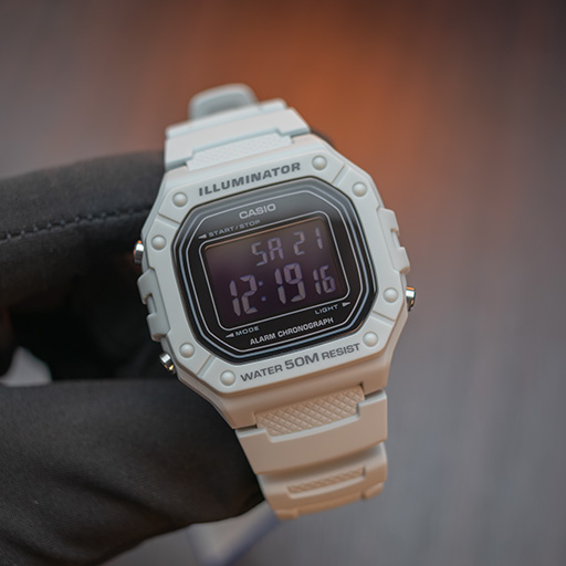مدل W-218H-8BV یک ساعت دیجیتال با بدنهای طوسیرنگ (خاکستری) است که ظاهری تاکتیکال و متفاوت نسبت به مدلهای مشکی معمول دارد. طراحی قاب مربعی و بزرگ این ساعت، شباهت زیادی به سری کلاسیک G-Shock (مانند مدلهای ۵۶۰۰) دارد، اما با قیمتی بسیار مقرونبهصرفهتر و وزنی سبکتر عرضه شده است. خوانایی صفحه نمایش بسیار بالاست و اعداد به صورت درشت نمایش داده میشوند. باتری قدرتمند با عمر ۷ سال و مقاومت در برابر آب تا عمق ۵۰ متر، این مدل را به یک «ساعت کار» جانسخت و قابل اعتماد برای استفادههای روزمره و ورزشی تبدیل کرده است.