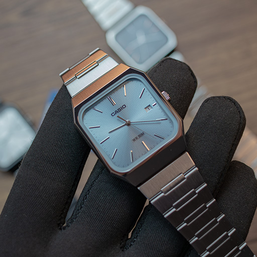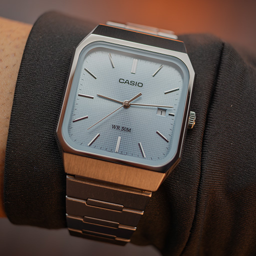 ساعت کاسیو MTP-B185D-2A2V یکی از جذابترین و بهروزترین مدلهای سری کلاسیک کاسیو است که با رنگ صفحهی خاص آبی فیروزهای (تیفانی)، نگاهها را به خود خیره میکند. این رنگ زیبا در کنار بدنه و بند استیل براق نقرهای، کنتراستی مدرن و جوانپسند ایجاد کرده است. علاوه بر زیبایی، این ساعت با ضخامت بسیار کم ۷.۳ میلیمتری، روی مچ دست بسیار راحت و سبک است. قفل بند این مدل از نوع ریلی (قابل تنظیم) است که سایز کردن آن را بسیار آسان میکند. اگر به دنبال ساعتی هستید که هم کلاسیک باشد و هم رنگی متفاوت و ترند داشته باشد، این مدل بهترین انتخاب است.