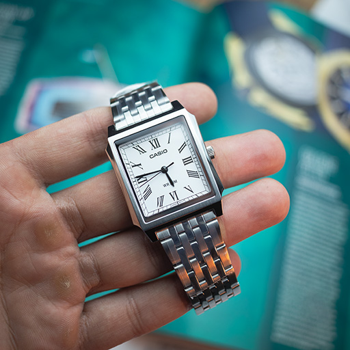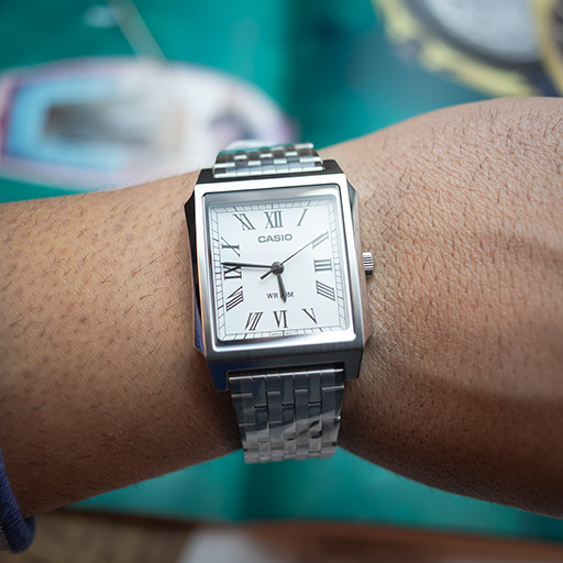 ساعت کاسیو MTP-B190D-7BV اوج زیبایی در سادگی است. این مدل تمام استیل با صفحه سفید/نقرهای، ظاهری درخشان، پاکیزه و بسیار شیک دارد. یکی از ویژگیهای متمایز و ارزشمند این ساعت، استفاده از «شیشه کروی» (Spherical Glass) است؛ انحنای ملایم شیشه علاوه بر افزایش زیبایی بصری، حس یک ساعت لوکس و گرانقیمت را منتقل میکند. طراحی صفحه کاملاً مینیمال است (بدون تاریخ و اعداد شلوغ) که خوانایی را بسیار آسان کرده است. بند استیل با کیفیت و قفل ضامنی راحت، در کنار مقاومت ۵۰ متری در برابر آب، این مدل را به گزینهای عالی برای استفادههای رسمی، اداری و روزمره تبدیل کرده است.