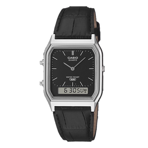 ساعت کاسیو مدل AQ-230EL-1A ترکیبی نوستالژیک و جذاب از طراحی کلاسیک و تکنولوژی مدرن است. این ساعت یونیسکس (مناسب آقایان و بانوان) با قاب مستطیلی نقرهای و بند چرم مشکی، ظاهری رسمی و در عین حال روزمره دارد که یادآور استایلهای محبوب دهه 80 میلادی است. تفاوت اصلی و برگ برنده سری EL نسبت به مدلهای معمولی این خانواده، وجود نور پسزمینه الکترولومینیسنت (Electro-luminescent backlight) است که خوانایی بخش دیجیتال را در تاریکی مطلق به بهترین شکل ممکن میسازد.