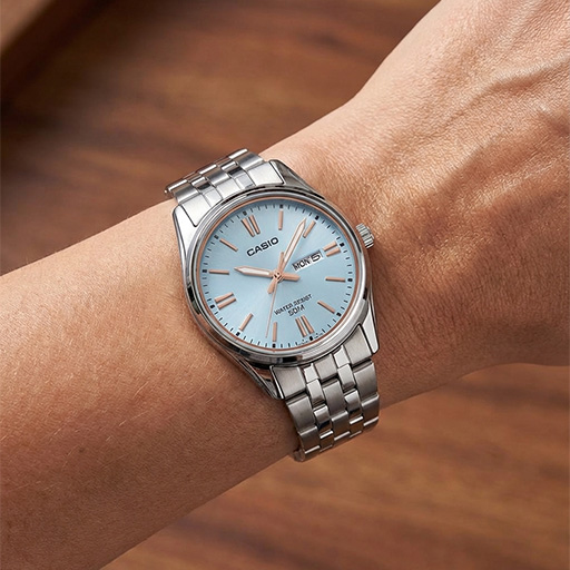 ساعت زنانه کاسیو مدل LTP-1335D-2A انتخابی عالی برای بانوانی است که میخواهند از روزمرگی فاصله بگیرند و رنگی تازه به استایل خود ببخشند. جذابترین ویژگی این مدل، صفحه آبی رنگ (Blue Dial) آن است که جلوهای شیک و اسپرت-کلاسیک به ساعت بخشیده است. قاب ۳۰ میلیمتری این ساعت نه آنقدر کوچک است که خوانایی را دشوار کند و نه آنقدر بزرگ که ظرافت زنانه را از بین ببرد؛ بلکه تعادلی عالی دارد.