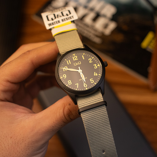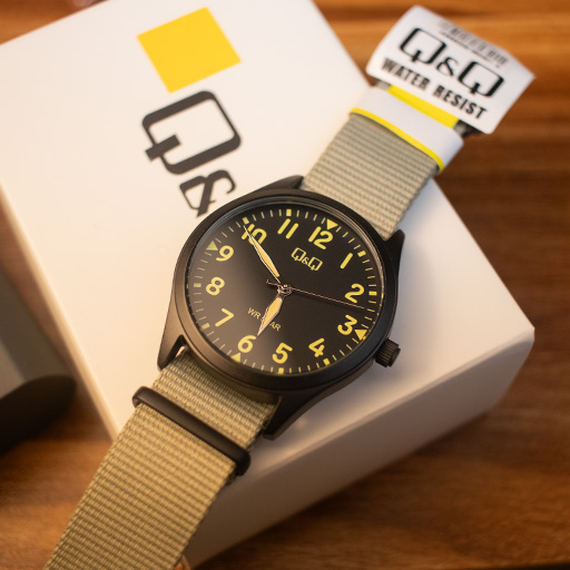 ساعت مچی مردانه کیو اند کیو مدل Q76B-006PY با الهام از طراحی ساعتهای نظامی و صحرایی (Field Watch)، یک انتخاب فوقالعاده برای آقایانی است که به استایلهای کژوال و اسپرت علاقه دارند. ترکیب **بند برزنتی سبز رنگ** با قاب فلزی مشکی مات و صفحه تیره، ظاهری جذاب و مردانه به این ساعت بخشیده است. این مدل با قطر قاب 39 میلیمتر و ضخامت بسیار کم 8.2 میلیمتر، از ترند سایزهای کلاسیک و استاندارد پیروی میکند و روی مچ دست بسیار خوشفرم مینشیند.
