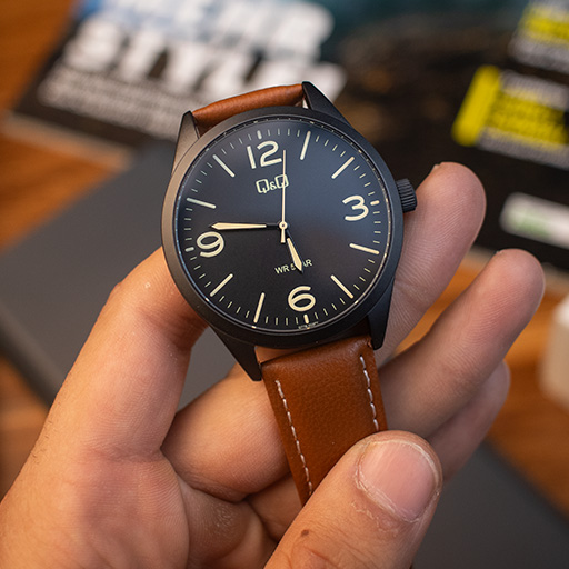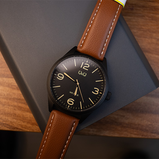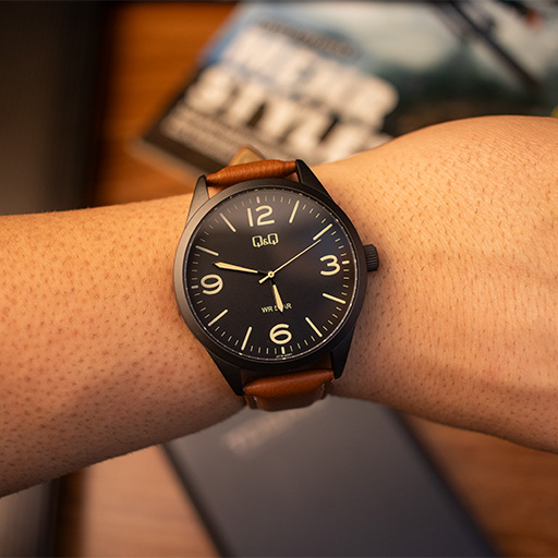 ساعت مچی مردانه کیو اند کیو مدل Q77B-003PY با بهرهگیری از ترکیب رنگی محبوب و همیشه مدِ قاب مشکی و بند قهوهای، ظاهری گرم و جذاب دارد که به راحتی با استایلهای نیمهرسمی و روزمره ست میشود. قاب 42 میلیمتری این ساعت ابعادی استاندارد و متناسب برای اکثر آقایان دارد و روکش مشکی مات آن جلوهای مدرن به ساعت بخشیده است. استفاده از اعداد و نشانگرهای واضح روی صفحه مشکی در کنار عقربههای شبنما، خوانایی زمان را در شب و روز تضمین میکند.